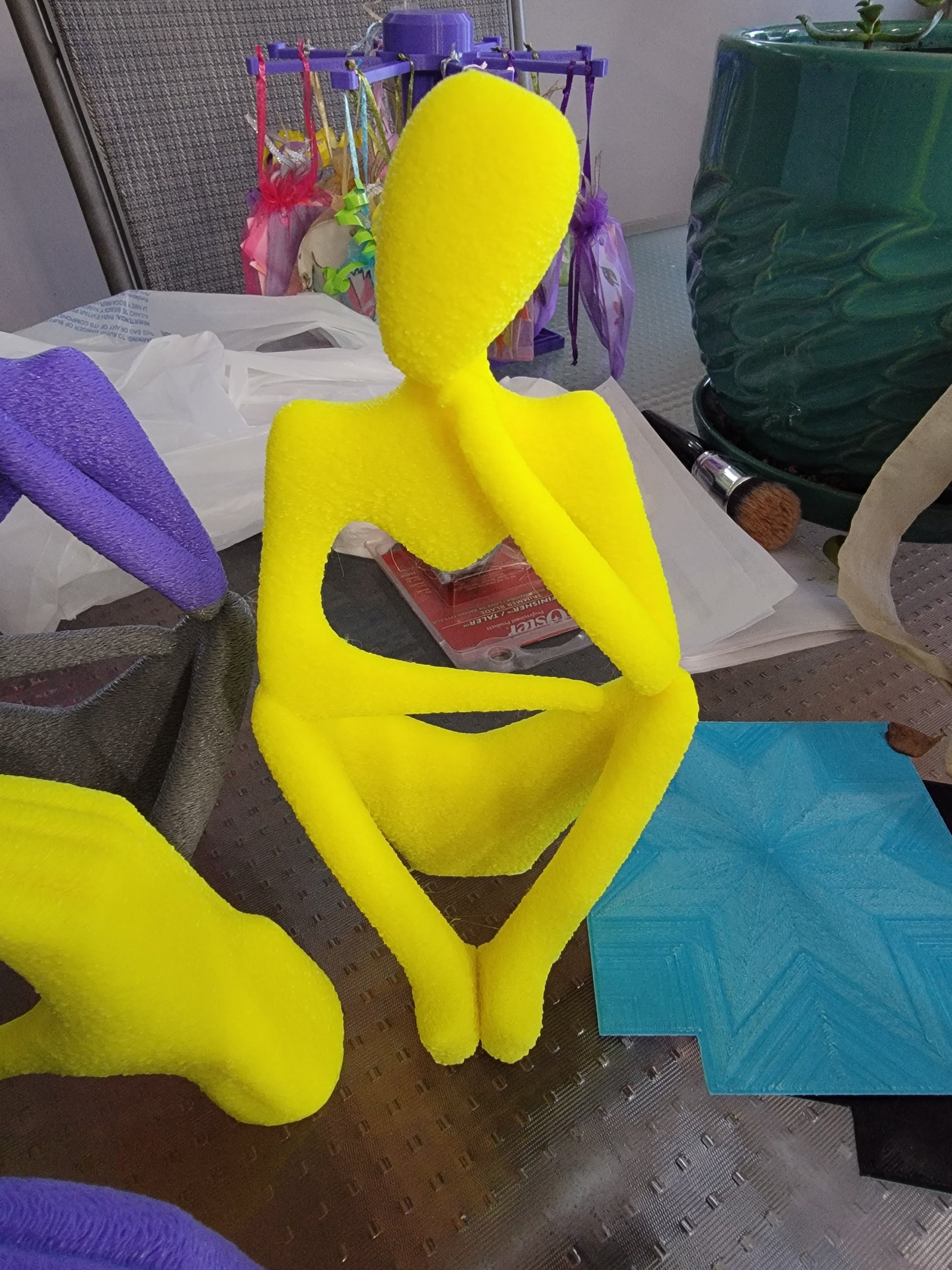 Unique thinking man statue printed in petg with the fuzzy skin feature enabled in the slicer. These one of a kind prints are amazing to hold and look at. With the fuzzy skin enabled it makes the layer lines become less visible giving it even more eye appeal. Roughly 3w"x 10h"